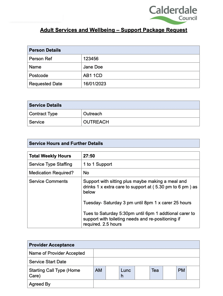 In the UK, Local Authorities have financial jurisdiction over deciding who receives state-funded social care. They are also legally responsible for 'managing the market', ensuring that there is enough diversity and resilience locally to avoid over-reliance on any one provider. In Calderdale, there are multiple Frameworks (a type of contract) that cover different categories of care. When someone receives care through the Framework, it's called a "call-off". These Frameworks are dominated by large agencies that sweep up most of the opportunities. For Calderdale, there is even a "main framework provider" that de facto gets 70% of the call-offs.